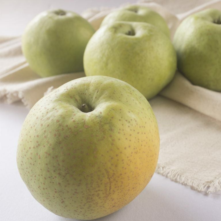 かほりは「新興」と「幸水」を交配種の青梨です。かほりはその名の通り、香りがよくサイズが大きいのが特徴です。 大きなものは2kgほどになる事もあります。味は酸味は少なく程よい甘みの上品な味。 肉質はやや粗めで、やわらかくてみずみずしい食感です。 スーパーではなかなか並ばない品種です。