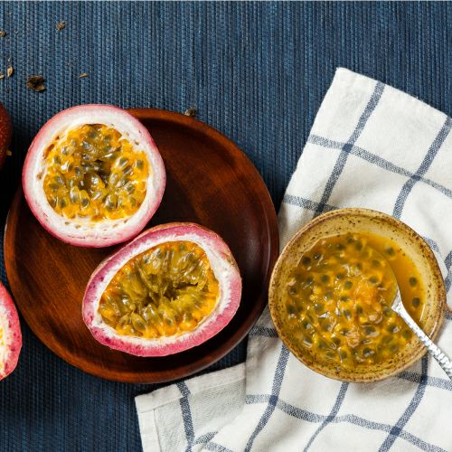 ●そしてビタミンB6と葉酸は、アミノ酸の合成と代謝に関与する栄養素。脂質の代謝、増血、認知症の予防などに効果が期待できるだけでなく、肌荒れ予防や胎児の健全な発育もサポートしてくれます。ビタミンB6と葉酸が摂れるパッションフルーツは、女性にありがたいフルーツであり、妊娠中の方にもおすすめしたいフルーツです。