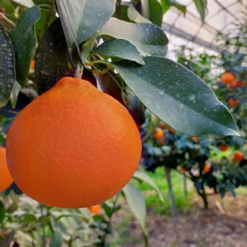 カリッと硬めの食感が特徴の品種です。ずっしりと重みがあり、収穫したてはかたすぎるほどですが、数日経つと果肉が滑らかにキメ細かくなり、非常に柔らかで溢れる果汁と濃厚な甘みが口の中に広がります。